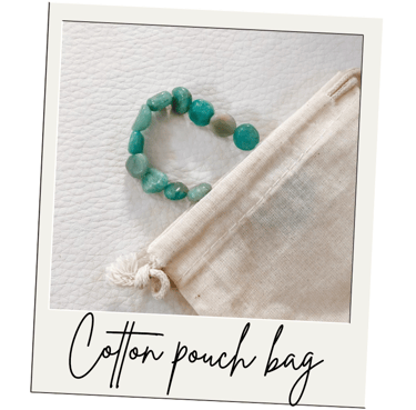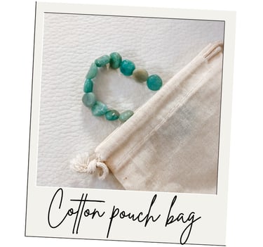 Other bracelets are simply packaged in a cotton pouch with my business card and shipped in a cardboard box.